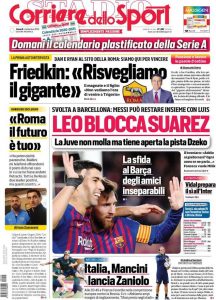 La nostra redazione vi augura buona giornata con le prime pagine dei quotidiani sportivi di oggi