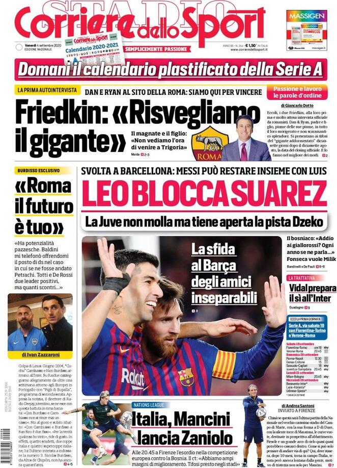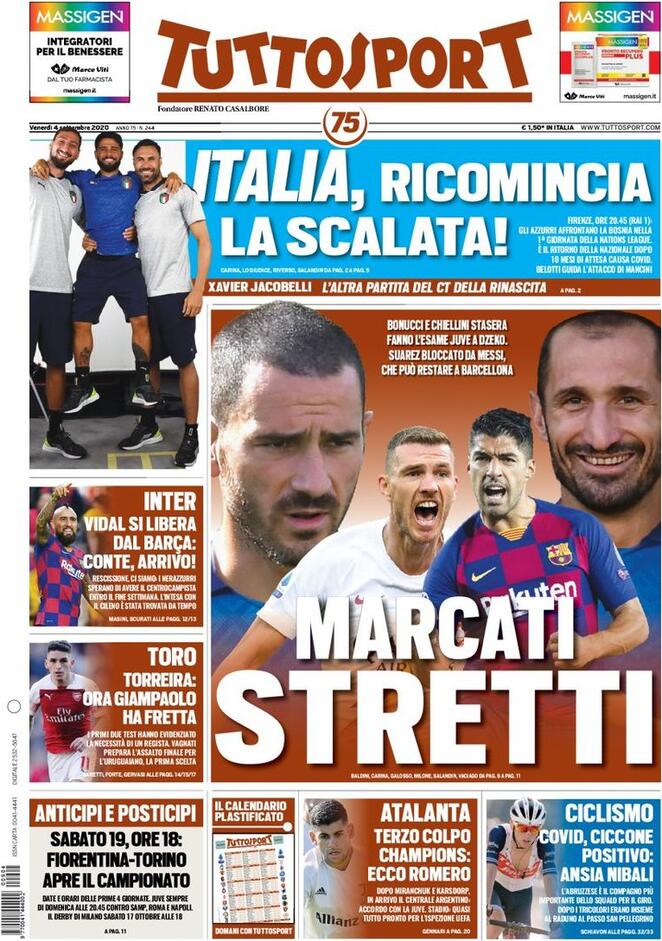 Le prime pagine dei quotidiani sportivi del 04-09-2020