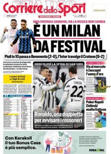 Le prime pagine dei quotidiani sportivi del 3-1-2021